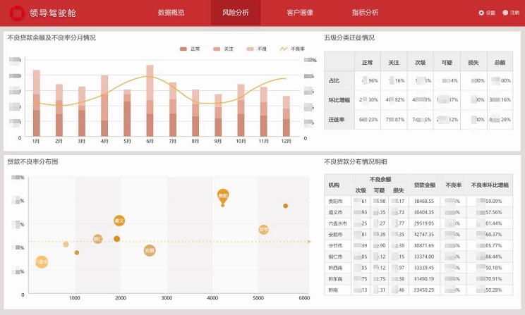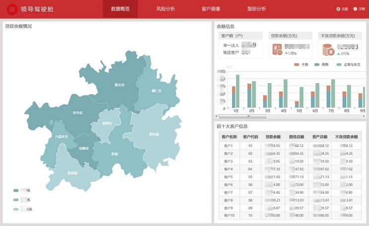 系統(tǒng)覆蓋了客戶風(fēng)險月報的常用固定報表、分析報表、綜合查詢、等業(yè)務(wù)需求;同時為了滿足各級領(lǐng)導(dǎo)快速直觀地了解掌握全行客戶風(fēng)險情況的需要,開發(fā)實現(xiàn)了領(lǐng)導(dǎo)駕駛艙功能;為了滿足業(yè)務(wù)人員能夠靈活便捷地對財政收支數(shù)據(jù)進(jìn)一步分析,開發(fā)實現(xiàn)了自助分析功能。