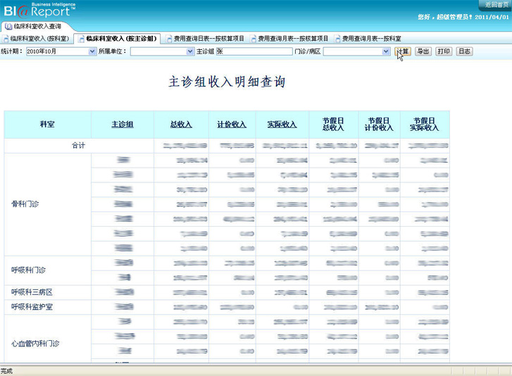 收入的情況除了能夠查詢科室粒度,還可以查詢到主診組的收入情況,如下圖: