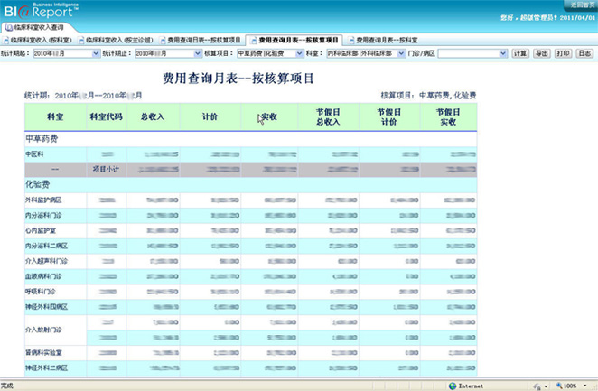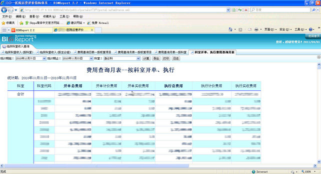 對于收入的統(tǒng)計,主要從科室角度進行,如分科室統(tǒng)計收入情況,統(tǒng)計收入結構情況,并將科室收入按照開單、執(zhí)行、計價、實收等數(shù)據(jù)進行統(tǒng)計。