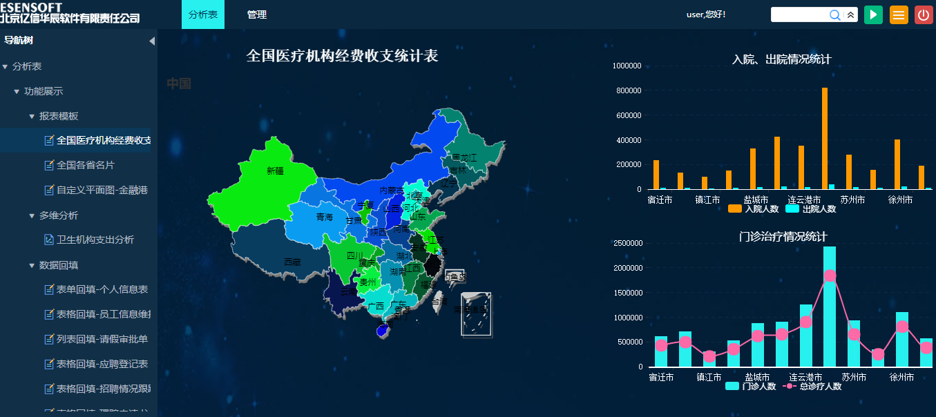 純Web的報表設計器,類excel的操作方式,支持斜線表元、合并拆分任意單元格等,輕松駕馭各類中國式復雜報表。
