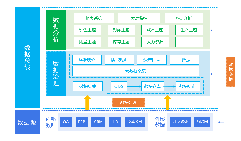 企業建設BI系統解決方案時,如何更好地管理和控制數據,做好數據體系建設,而非打造一個又一個割裂孤立的系統,這其中數據分析與數據治理雙翼并行是關鍵。