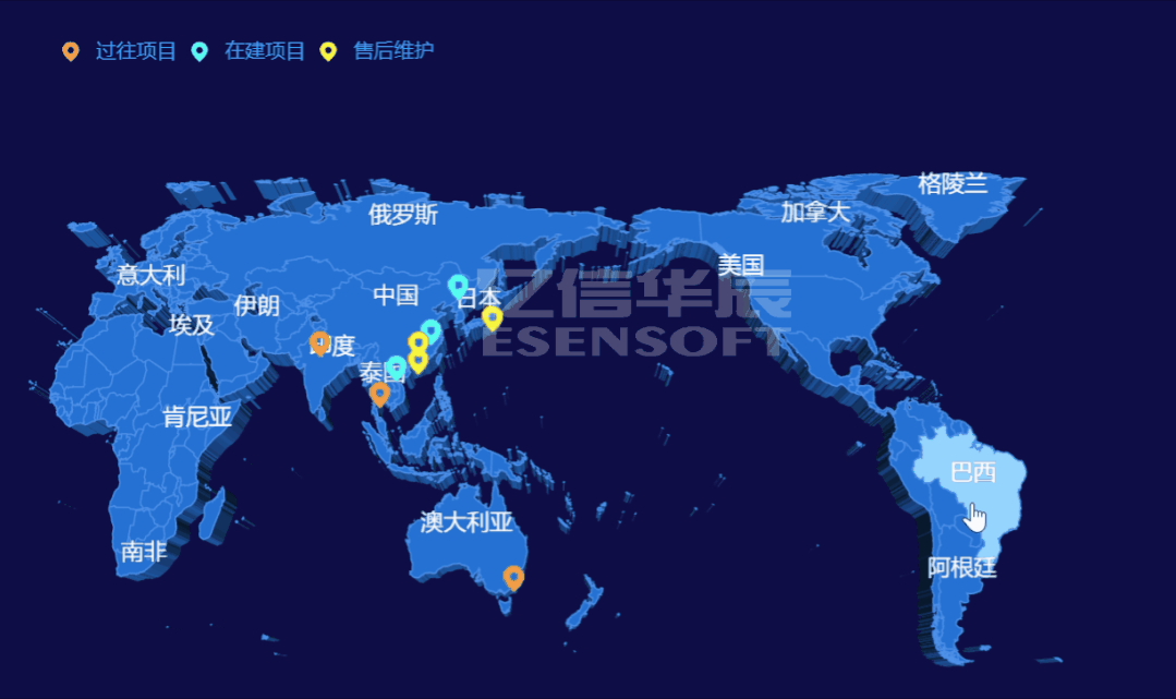 將標(biāo)點(diǎn)和地圖相結(jié)合,以地圖為背景,將每個國家的數(shù)據(jù)通過標(biāo)點(diǎn)的形式直觀呈現(xiàn)。