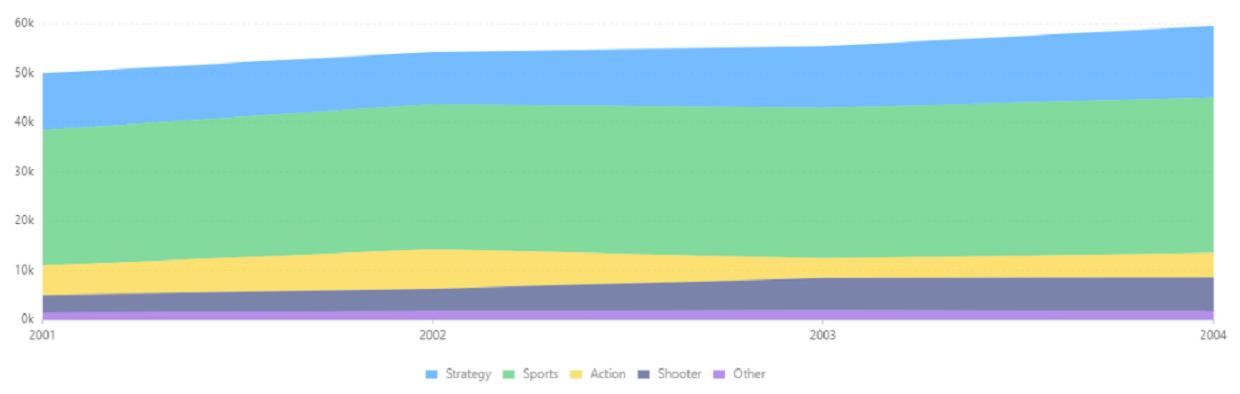 常規面積圖適合表現總量和分量之間的關系,比如總量是總用戶量,而分量是各個渠道的用戶,那么選用面積圖較為合適